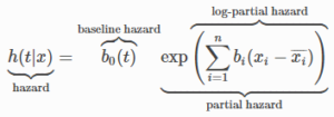 Merk at tidskomponenten kun ligger i første del av uttrykket ovenfor: . Denne kalles «baseline hazard» og er en tidsavhengig basiskomponent som skaleres opp eller ned basert på det andre leddet der forklaringsvariablene inngår.