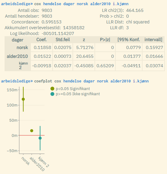 coefplotkan brukes i sammenheng medcoxfor grafisk visning av estimatene, slik som i eksemplene over. -