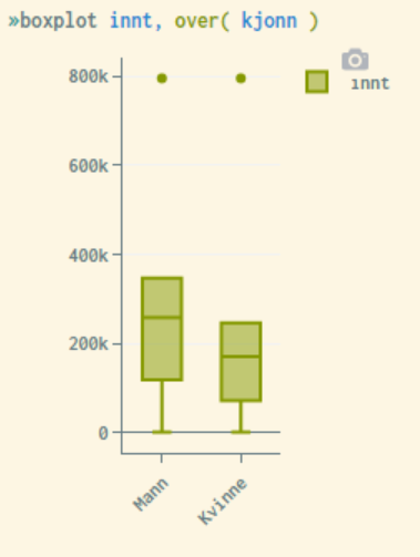Eksempel på boxplot for inntekt per 2000-01-01 fordelt på kjønn: