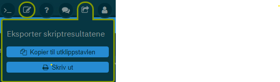 Man kan også velge å skrive ut alle resultater som man finner i resultatvinduet til høyre etter kjøring av skript, evt. lagre som .pdf, når man velger "Skriv ut".