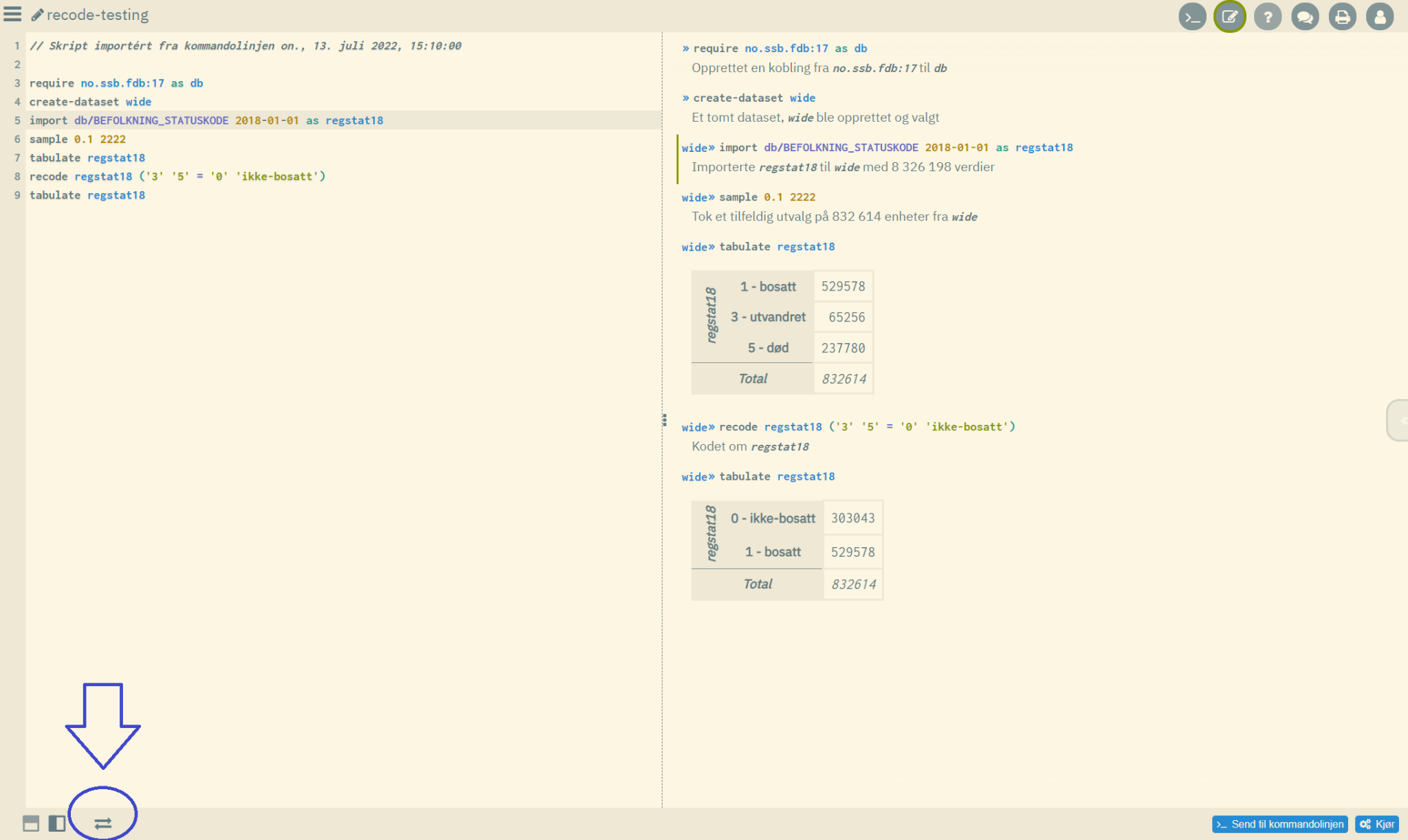 \rhd Praktisk eksempel på automatisk omkoding av kommunekoder ved opplasting av SSB-fil