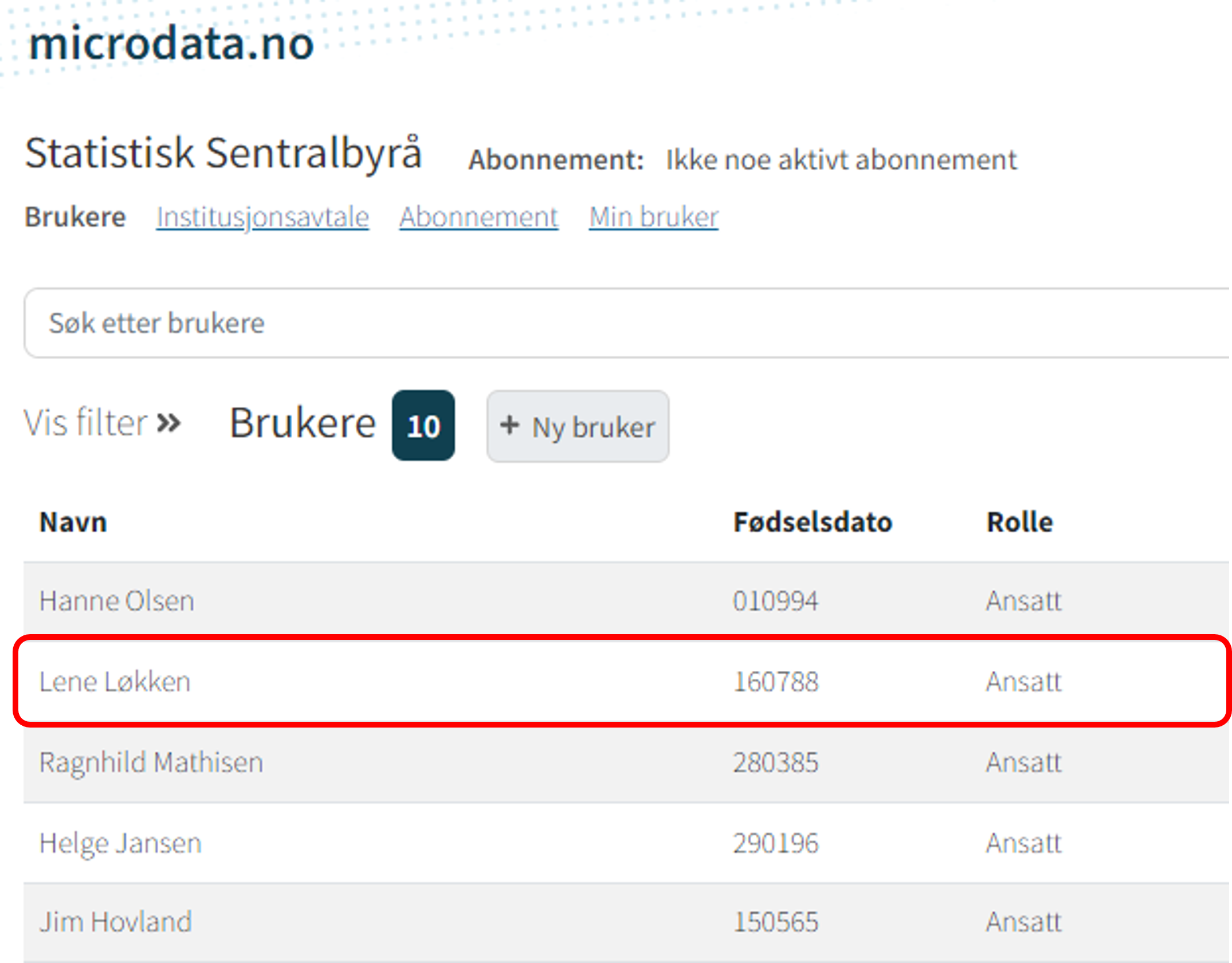 For å få endret informasjon om eksisterende brukere, må Hovedkontakt eller Brukeradministrator først logge inn i Brukeradministrasjon via microdata.no.