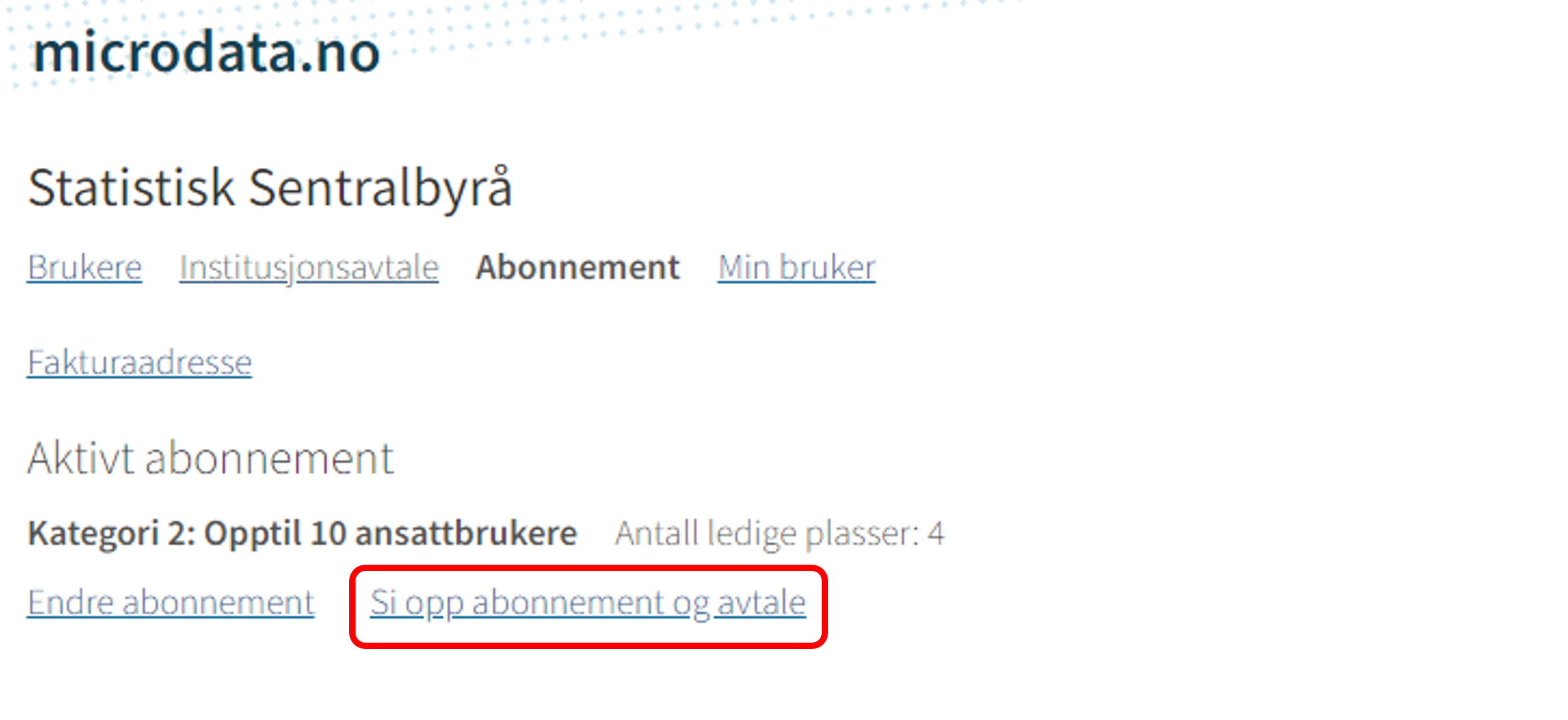 For å få si opp abonnementet må Hovedkontakt først logge inn i Brukeradministrasjon via microdata.no.