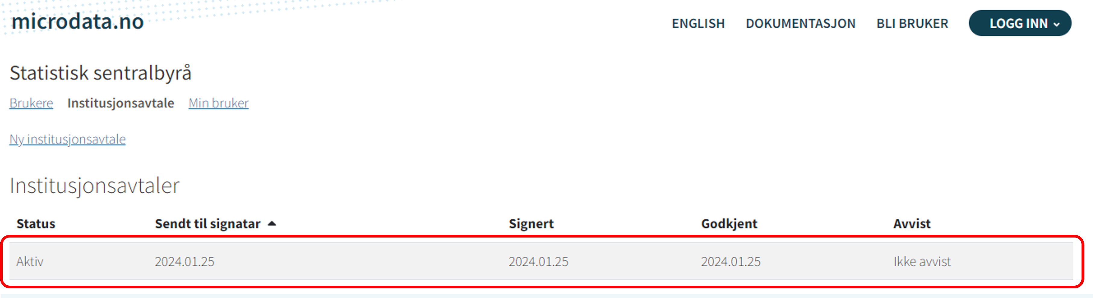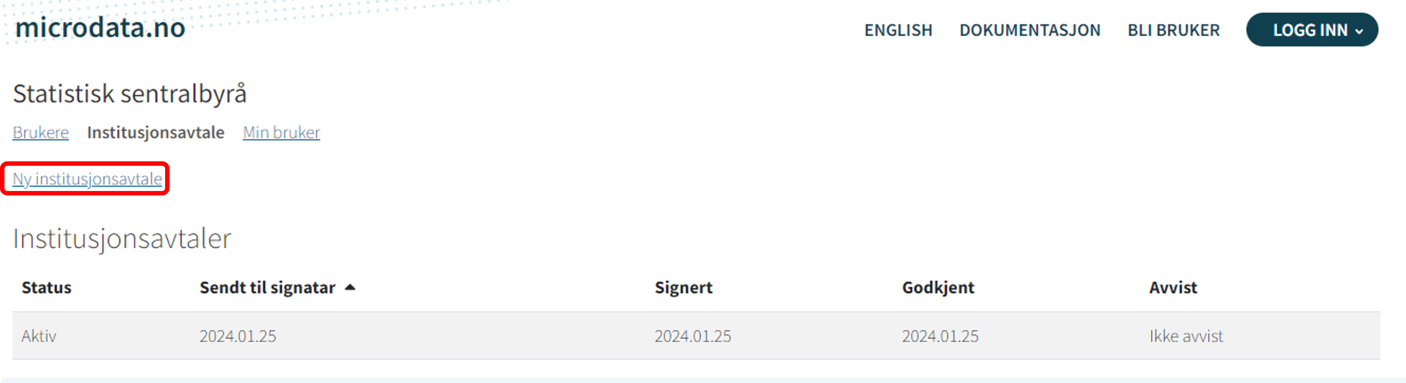 Alle institusjoner må tegne ny avtale for å forlenge tilgangen til microdata.no. Institusjonens Hovedkontakt administrerer avtaleinngåelse på vegne av institusjonen.