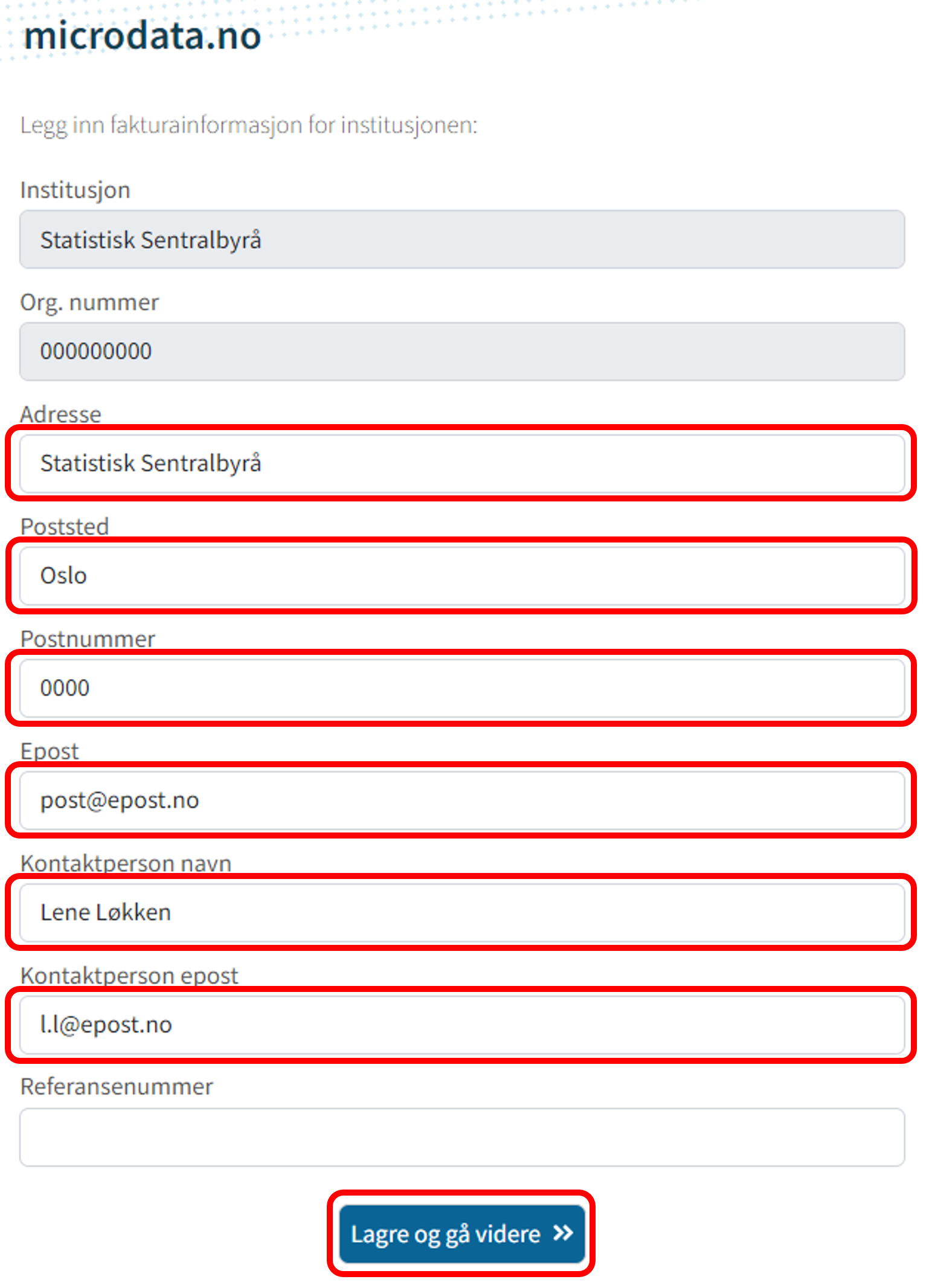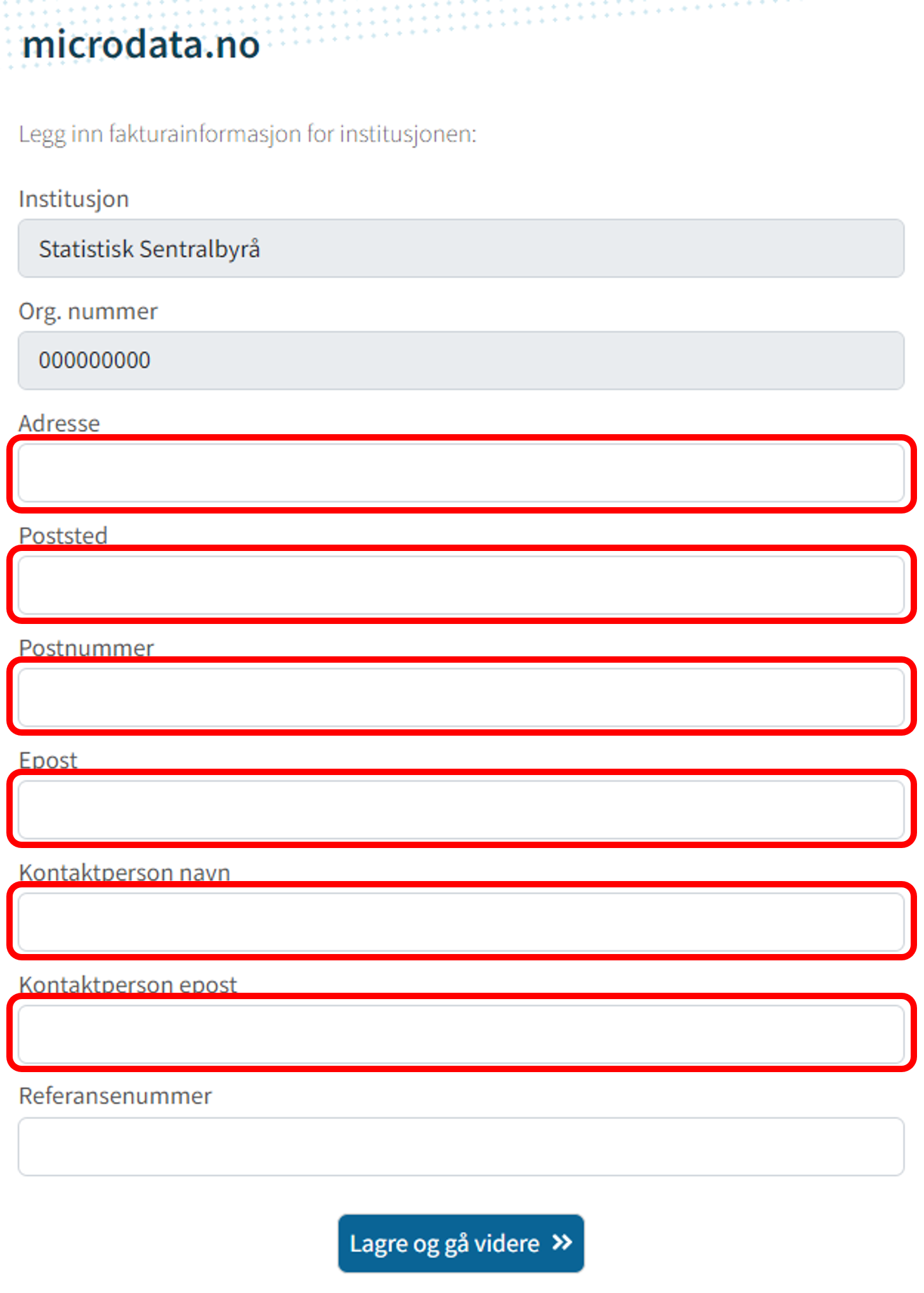Hovedkontakt må oppgi institusjonens fakturainformasjon.